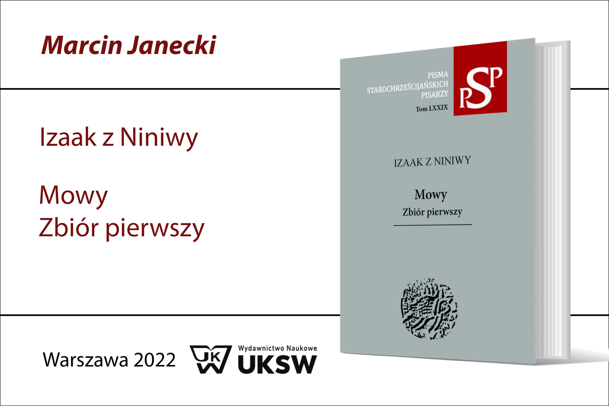 Izaak z Niniwy, Mowy. Zbiór pierwszy, wprowadzenie, przekład z języka syryjskiego, opracowanie naukowe i indeksy Marcin Jan Janecki [seria: Pisma Starochrześcijańskich Pisarzy, t. 79], Warszawa: Wydawnictwo Naukowe Uniwersytetu Kardynała Stefana Wyszyńskiego 2022.