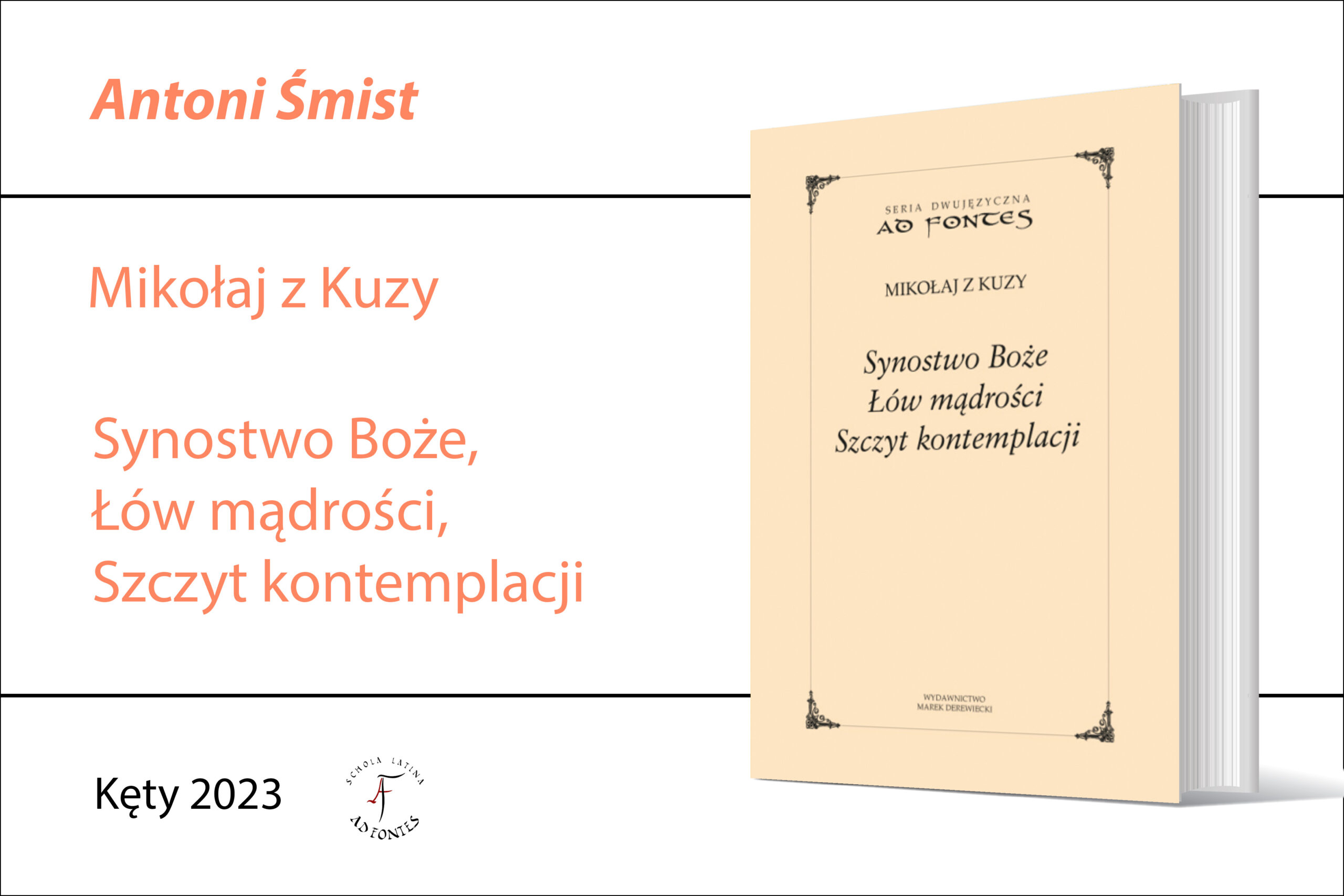 Książka Mikołaja Kuzańczyka (1401–1464) składa się z trzech, jak dotąd nieprzetłumaczonych, traktatów – Synostwo Boże (1445), Łów mądrości (1463) i Szczyt kontemplacji (1464), w tłumaczeniu Antoniego Śmista. Zestawienie tych trzech tekstów pozwala przedstawić najważniejsze problemy, które przenikały myśl Mikołaja Kuzańczyka, a także strategię prowadzonych przez niego rozważań, zorientowanych na poszukiwanie niepojętego Boga.